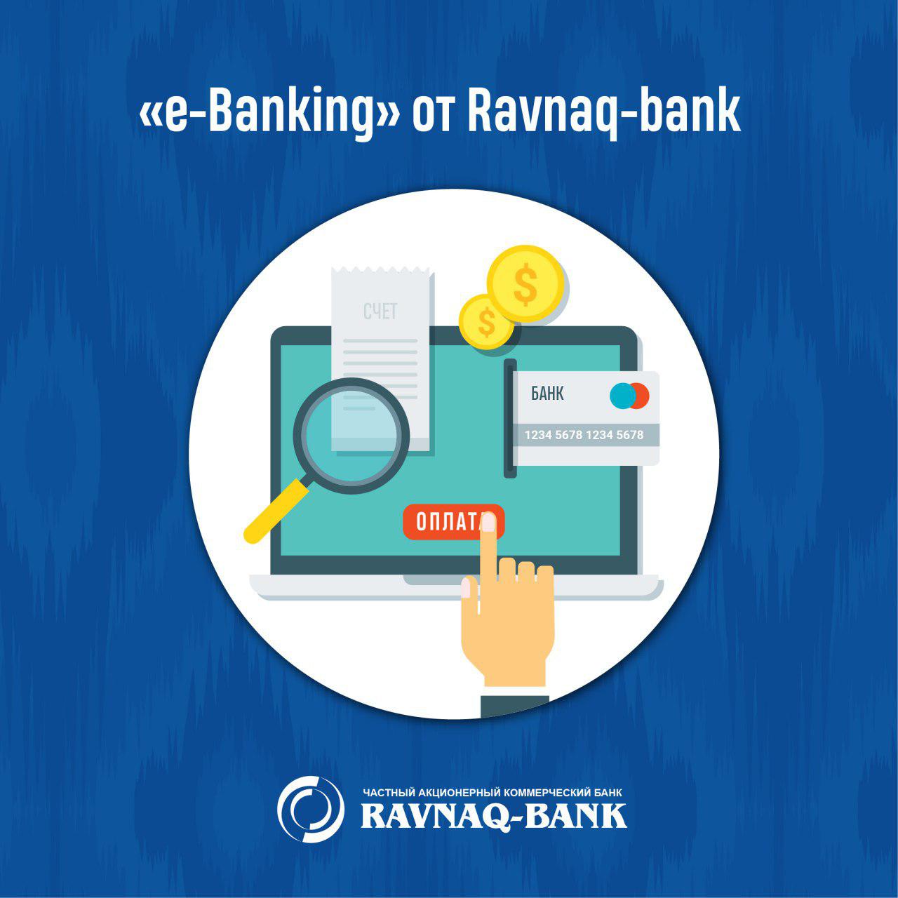 Доводим до Вашего сведения, что комиссия за пользование системой «Internet-Банк-Клиент» и «Ravnaq mobile» начиная с 01.08.2021 года будет сниматься при проведении первой дебетовой проводки. (На сегодняшний день комиссия снимается в последний рабочий день месяца.)